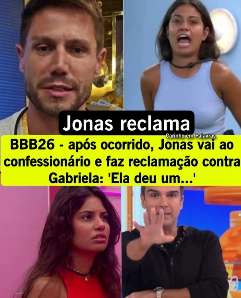Sem citar rodeios, o brother mencionou Gabriela e criticou a postura dela durante a prova. De acordo com Jonas, a estudante teria participado da dinâmica dando risada, atitude que ele considerou inadequada para o momento.