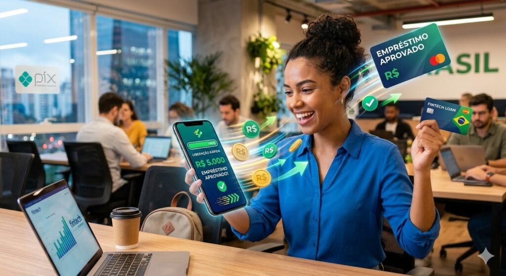 Uma das áreas que mais cresceu foi o empréstimo digital. Hoje é possível solicitar crédito em poucos minutos pelo celular e receber o dinheiro na conta no mesmo dia, dependendo da análise de crédito.