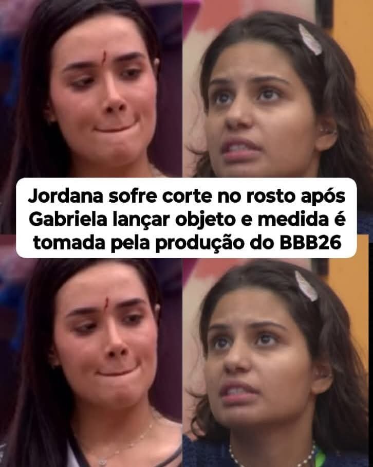 Um incidente inesperado marcou a Prova do Anjo do BBB26, realizada neste sábado (7), e chamou a atenção do público e dos participantes. Durante a dinâmica, Jordana acabou sofrendo um corte no rosto após ser atingida por um objeto arremessado por Gabriela, o que levou a produção do reality show a agir imediatamente.